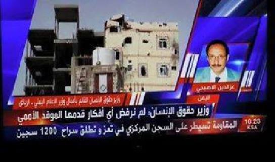 عنونت في الشاشة “المقاومة تسيطر على السجن المركزي في تعز وتطلق 1200 سجين” – الصورة توثق للتوقيت وللعنوان.