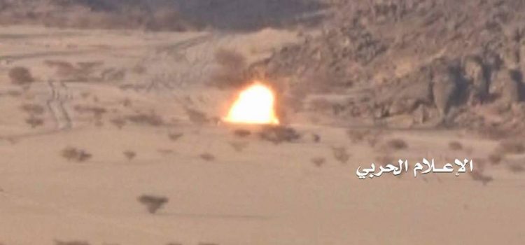 شاهد بالفيديو لحظة استهداف طقم عسكري محمل بالمرتزقة في نجران