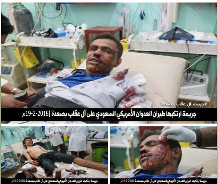 وأفاد مصدرأمني عن إصابة مواطنين اثنين في غارة لطيران العدوان على منطقة آل عقاب بالقرب من المدينة.