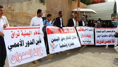 وقفة احتجاجية للمكونات السياسية والوطنية ومنظمات المجتمع المدني تنديدا بالموقف الأممي المتخاذل تجاة جرائم العدوان السعودي