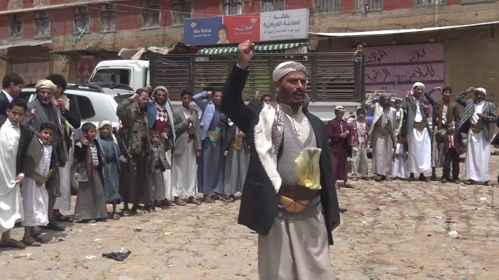 A number of people within the city of Taweelah in al-Mahweet went on a stationary protest to denounce the printing of the new currency, which has tremendously affected the economy of the country in a negative way.