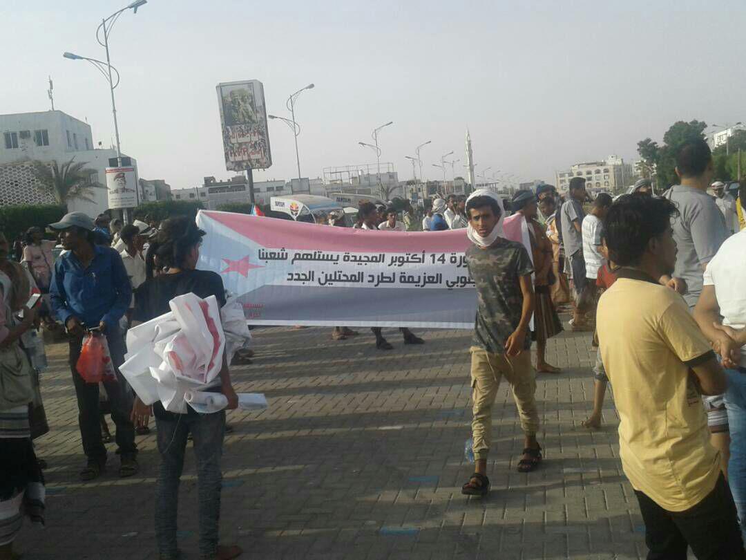 الحراك يحتفل بذكرى ثورة 14 اكتوبر في عدن بهتافات وشعارات مناهضة للإحتلال الجديد