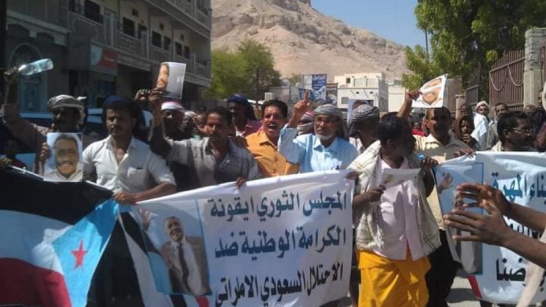 نظم مجلس الحراك الثوري لتحرير واستقلال الجنوب، في مدينة سيئون بوادي حضرموت صباح اليوم السبت، مظاهرة جماهيرية عارمة احتجاجاً على سياسات «تحالف الغزو والاحتلال الأمريكي السعودي الإماراتي» ونهبه لخيرات المحافظات الجنوبية.