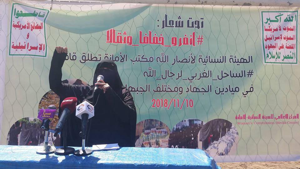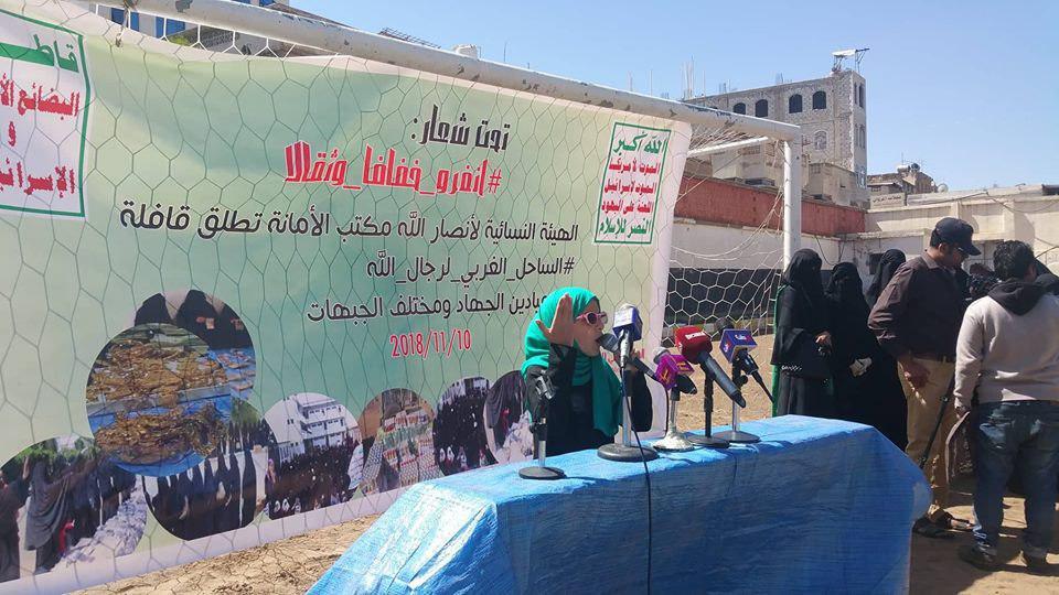 وبعد فإننا اليوم في الهيئة النسائية الثقافية العامة مكتب الأمانة واستجابة للدعوة التي أطلقها سيد مسيرتنا القرآنية السيد عبد الملك الحوثي سلام ربي عليه برفد الجبهات نعلن عن تسيير قافلتنا المتواضعة والتي تقدمها أزواجنا وأبناؤنا وكل عزيز حر من أهلنا ونقول لك يا سيدي والله لو خضت بنا البحر لخضناه معك ما تخلف منا مؤمن ولا مؤمنة كيف ونحن من تريبنا على القرآن وسرنا على نهج النبي ونجوم الأرض والسماء من أهل بيته الأطهار ابتداء بالوصي وصولا إليك يا سيدي ومولاي