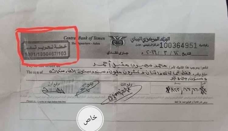 وحسب وسائل اعلامية موالية للعدوان فإن الوثيقة “الشيك” الصادر بتأريخ 12-3-2019م، ويحمل الرقم (100364951) الذي حصل “يمانيون” على نسخة منه – يثبت وبجلاء ضلوع حكومة الفار هادي والتي يرأسها المدعو معين عبدالملك في العبث بأموال الشعب وتبديده بأيدي اللصوص والفاسدين من مرتزقة العدوان.