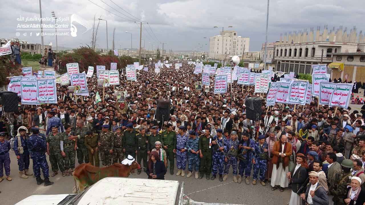 وأكد بيان المسيرة رفض أبناء ذمار للمؤتمرات والصفقات التي يعقدها أمراء العمالة والارتزاق.. لافتا إلى أن الشعب اليمني لن يتخلى عن فلسطين أو أي شبر من أراضيها.