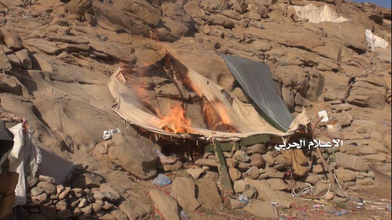 وبينت المشاهد إحراق محازن أسلحة وجيب عسكري ومعدل 23 أثناء العملية، بالإضافة إلى إحراق خيام المرتزقة.