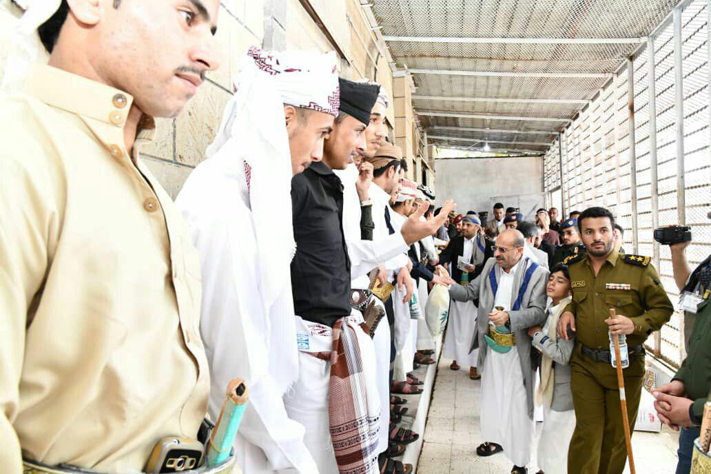 وقال العميد الماخذي ” قمنا اليوم بتوزيع جعالة العيد وظرف مالي لجميع النزلاء في الإصلاحية المركزية بالأمانة لعدد ٣ آلاف نزيل وعامل”.