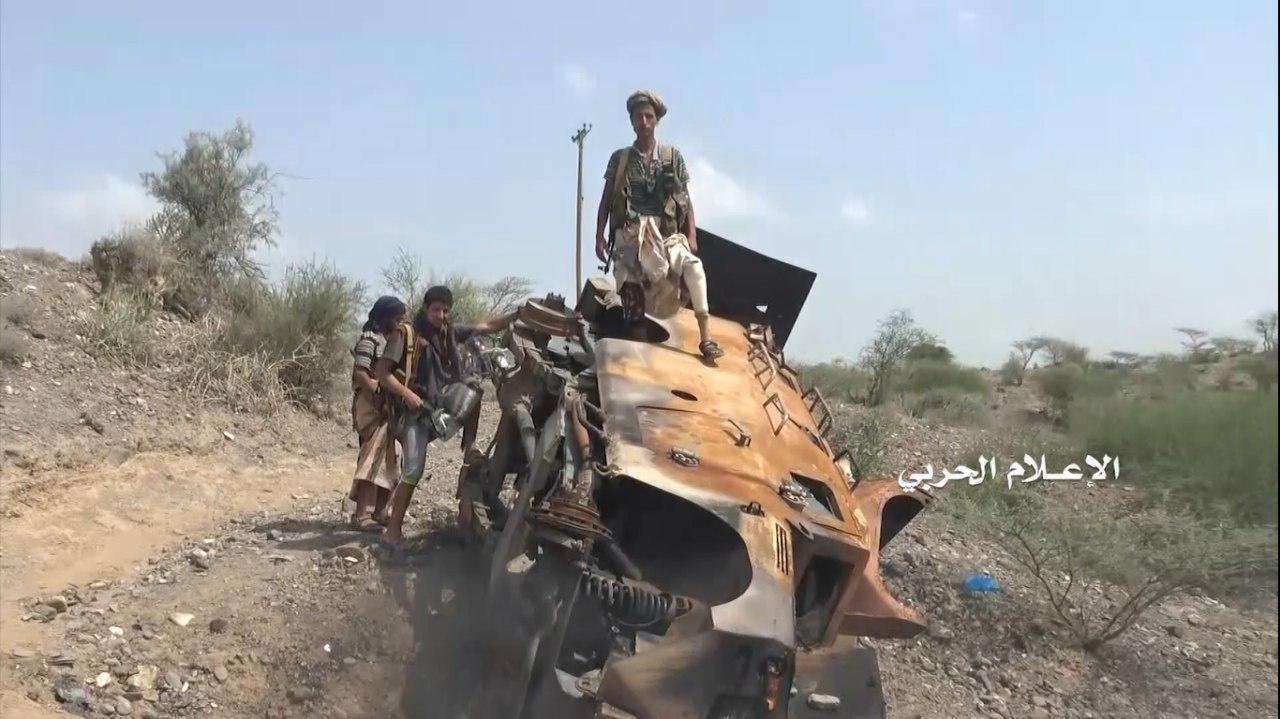 كما تظهر مشاهد الإعلام الحربي إحراق أبطال الجيش واللجان الشعبية لعدد من مدرعات مرتزقة العدوان العسكرية.