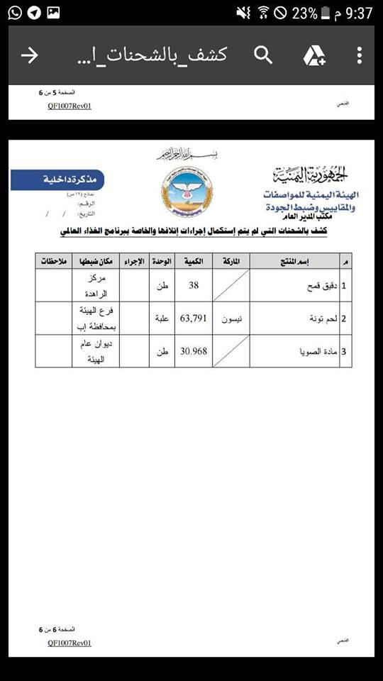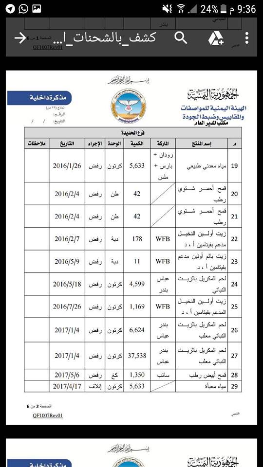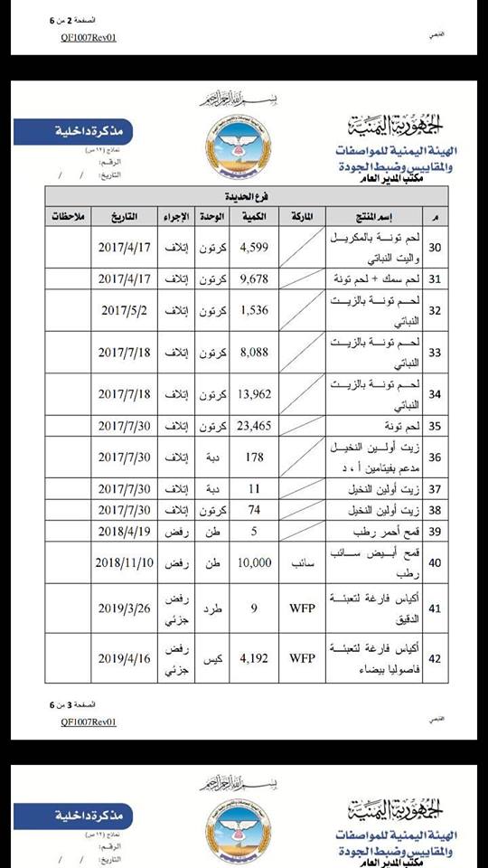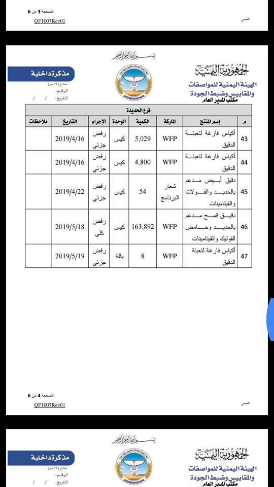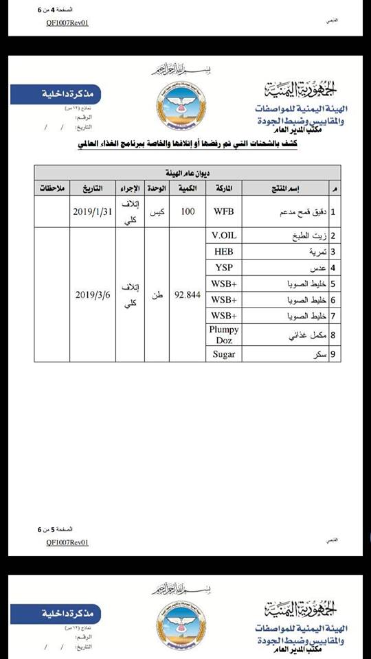 إلى ذلك تؤكد العديد من الوثائق والكشوفات حجم ما ترتكب منظمة الغذاء العالمي من أجرام بحق أبناء الشعب اليمني ومساندة منها للدول العدوان في قتل اليمنيين وذلك بقيامها توزيع المواد الغذائية الفاسدة والغير صالحة للاستخدام الأدمي, وقد ثبتت مئات الحالات المرضية التي تسببت بها منظمة الغذاء العالمي عبر توزيعها التغذية المدرسية والمواد الغذائية الفاسدة منذ بدء العدوان على اليمن في الـ 26 من مارس 2015م.
