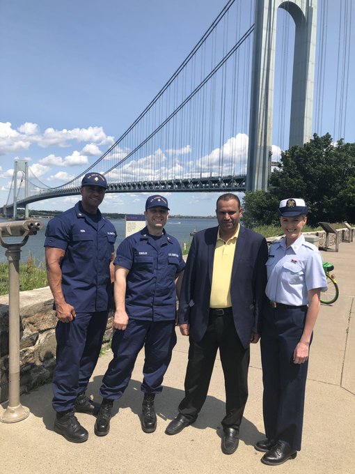 وأضاف المرتزق عبدالغني جميل الذي كان يعمل حارساً في السفارة الأمريكية بصنعاء قبل توليه عدد من المناسب الحكومية، اضاف في تغريدته التي أرفق فيها صور له مع عناصر من القوات البحرية الأمريكية، “الآن بجزيرة استيتين آيلاند، أمام جسر ڤرزانا برتش، اليوم في الولايات المتحدة الأمريكية مع عدد من الأصدقاء من القوات البحرية”.