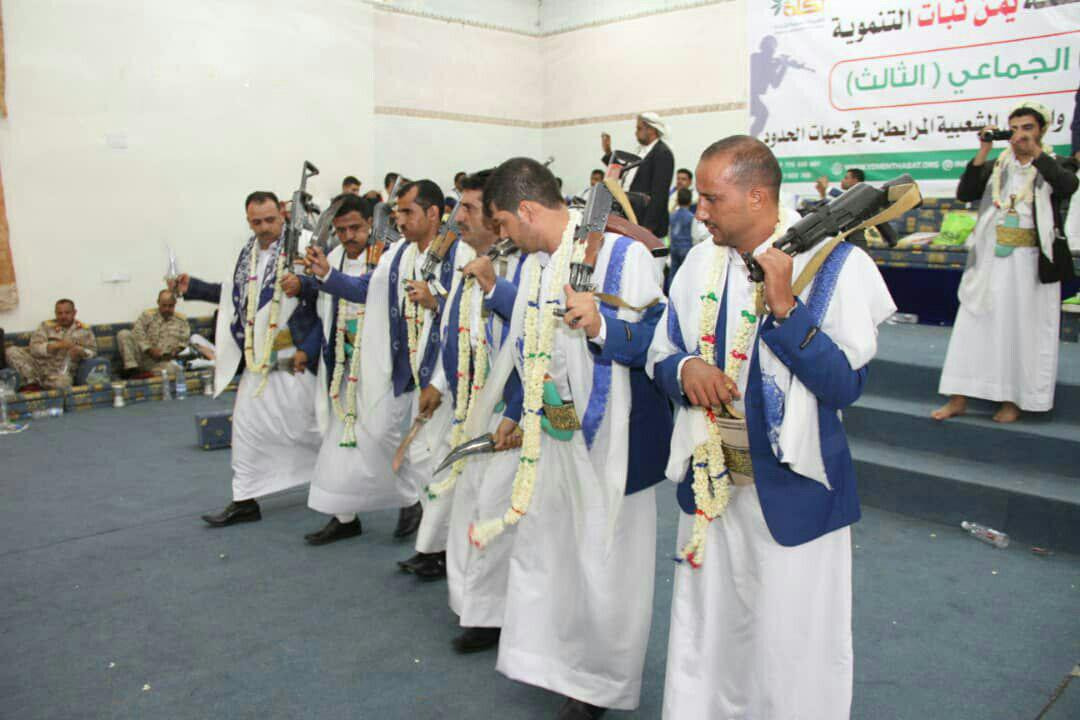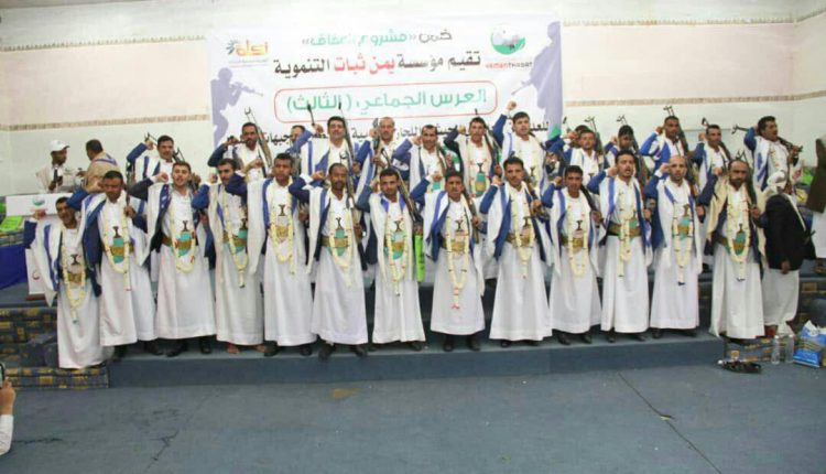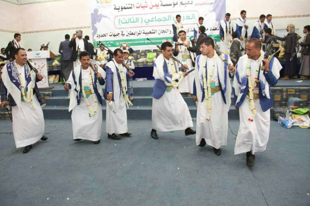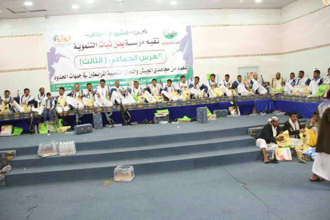 أقامت مؤسسة يمن ثبات التنموية بدعم من الهيئة العامة للزكاة، العرس الجماعي الثالث الذي اقيم في مدينة عمران لنحو 35 عريساً من مجاهدي الجيش واللجان الشعبية المرابطين في جبهات الحدود.