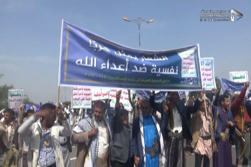 شهدت محافظتي المحويت وتعز، اليوم الجمعة، مسيرتين جماهيريتين حاشدتين بمناسبة الذكرى السنوية للصرخة في وجه المستكبرين.