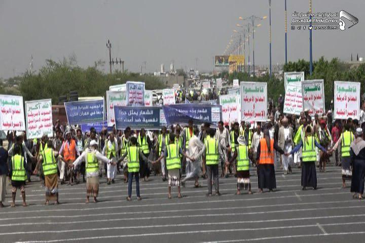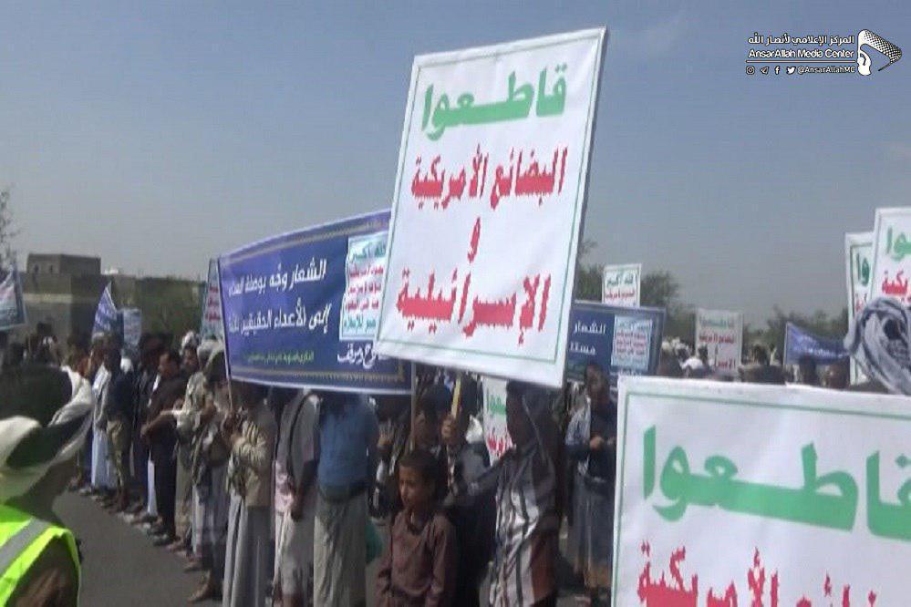 وعبر المشاركون عن تمسكهم بأهداف ومعاني البراءة من أعداء الله من منطلق الانتماء للإسلام وإلى القرآن الكريم، مشددين على أن الشعار ضرورة لمواجهة حالة الصمت واستنهاض الأمة في مواجهة دول الاستكبار العالمي ومخططاتها العدائية للأمة.