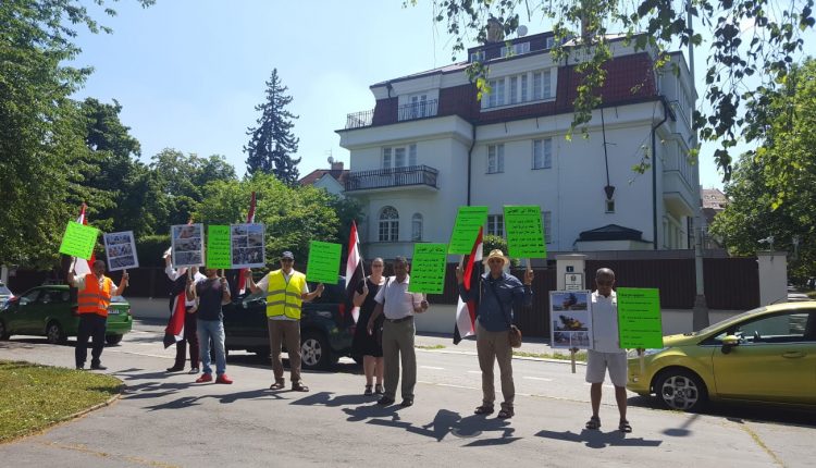نفذ العشرات من أبناء الجالية اليمنية في جمهورية التشيك وقفة احتجاجية أمام السفارة الإماراتية والسعودية للمطالبة بوقف عدوانهما المستمر على اليمن منذ خمس سنوات.