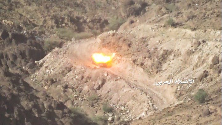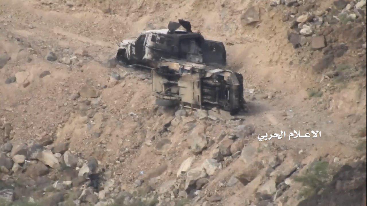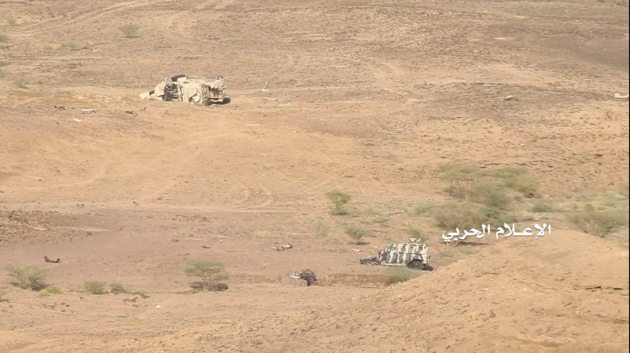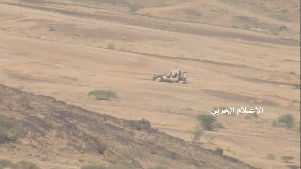 كما أظهرت المشاهد لحظات استهداف آلية لمرتزقة العدوان بصاروخ موجه ومصرع وجرح من كان على متنها.