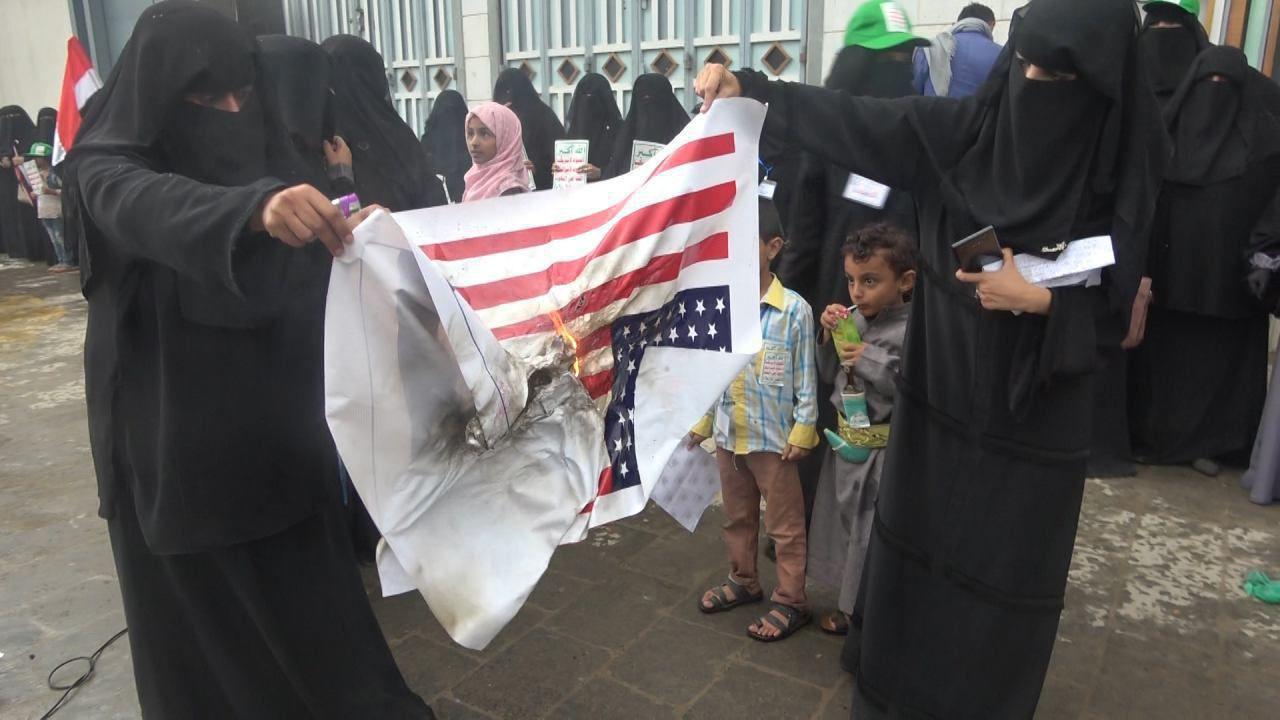 وفي الوقفة تم إحراق العلم الأمريكي والعلم الإسرائيلي وترديد الشعارات المعبرة عن كراهية الشعوب المسلمة لليهود وعدم قبول أي شكل من أشكال التطبيع مع هذا الكيان الغاصب والمحتل.