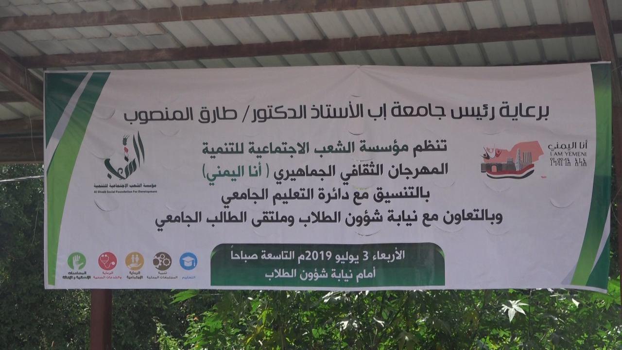 كما أقيم اليوم بجامعة إب مهرجان ثقافي جماهيري نظمته مؤسسة الشعب الاجتماعية للتنمية ضمن فعاليات الأسبوع الثقافي بالتنسيق مع دائرة التعليم الجامعي ونيابة شئون الطلاب وملتقى الطالب الجامعي.