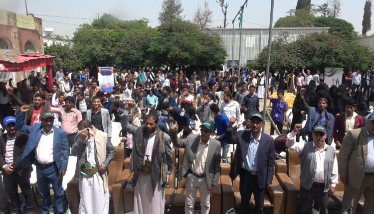 نظمت الهيئة النسائية الثقافية العامة بمحافظة إب وقفة نسائية أمام المبنى التابع للأمم المتحدة تنديداً بورشة المنامة وصفقة القرن التي تهدف إلى إنهاء القضية الفلسطينة.