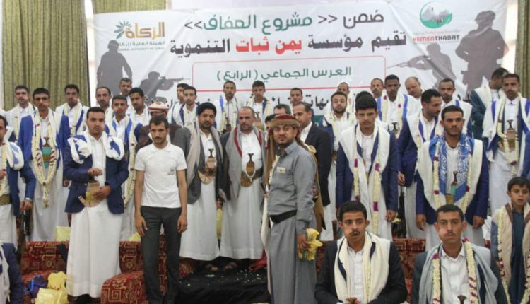 يمانيون – نظمت مؤسسة يمن ثبات التنموية اليوم بصنعاء العرس الجماعي الرابع لنحو 80 من المرابطين في الجبهات من الجيش والامن واللجان الشعبية، وذلك بدعم من الهيئة العامة للزكاة.