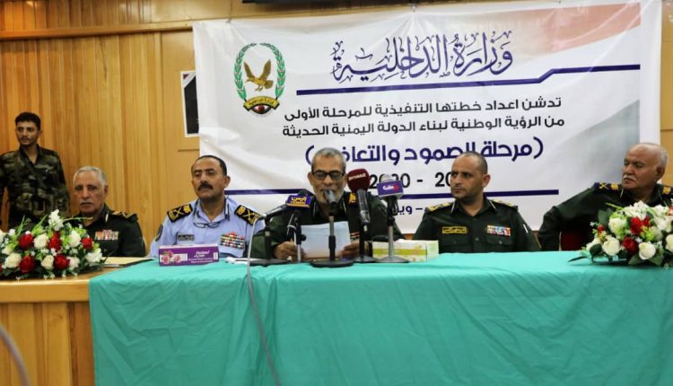 دشنت وزارة الداخلية اليوم العمل بالمرحلة الأولى من الرؤية الوطنية لبناء الدولة اليمنية الحديثة 2019- 2020 .