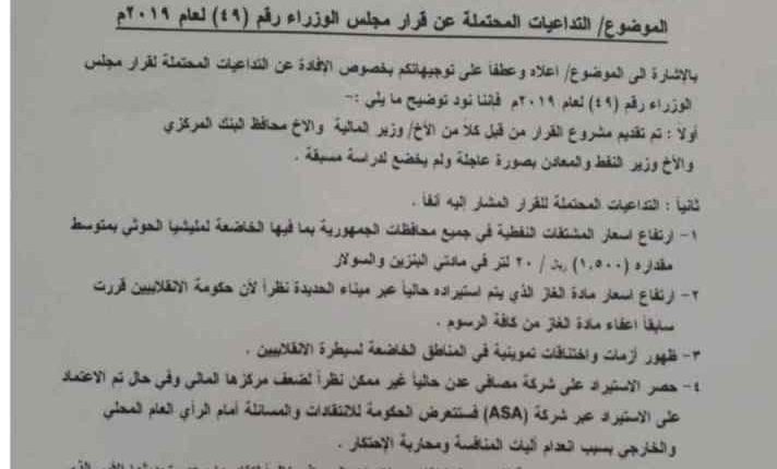هام: حكومة هادي تعترف بأن قراراتها هي السبب بتفاقم أزمة المشتقات النفطية الحاصلة في المحافظات اليمنية (وثيقة رسمية)
