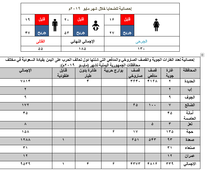 – إن استمرار إغلاق مطار صنعاء الدولي منذ 9 اغسطس 2016 وحتى يومنا ،رغم جاهزيته يُعد انتهاكاً صارخا ًلكافة القوانين والمعاهدات والمواثيق الدولية و قد تسبب في خلق مأساة انسانية كبيرة حيث تشير احصائيات وزارة الصحة عن وفاة اكثر من 34,000 حاله مرضية ممن كانوا بحاجة ماسه للسفر للعلاج بالخارج، وأن أكثر من 250.000 من حالات الأمراض المستعصية بحاجه ماسه للسفر الى الخارج لتلقي العناية الطبية والعلاج وينتظرهم مصير مجهول في حالة استمرار إغلاق مطار صنعاء الدولي.