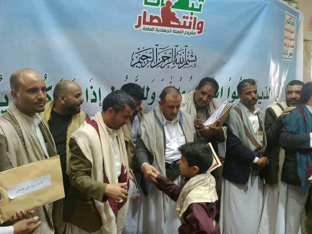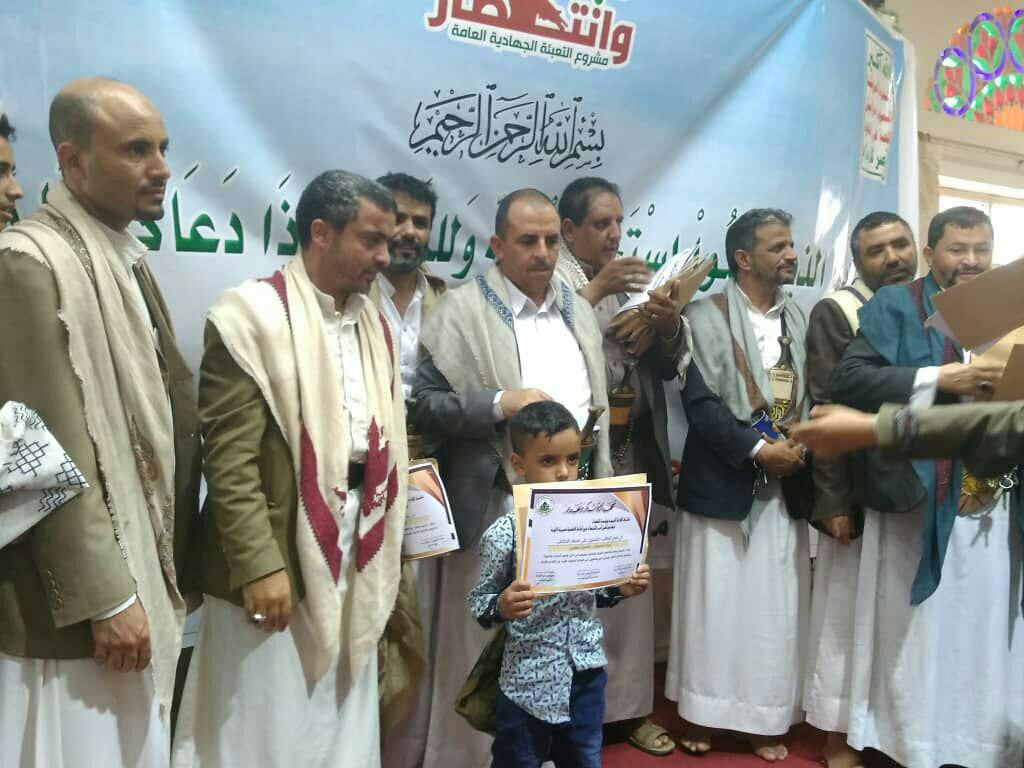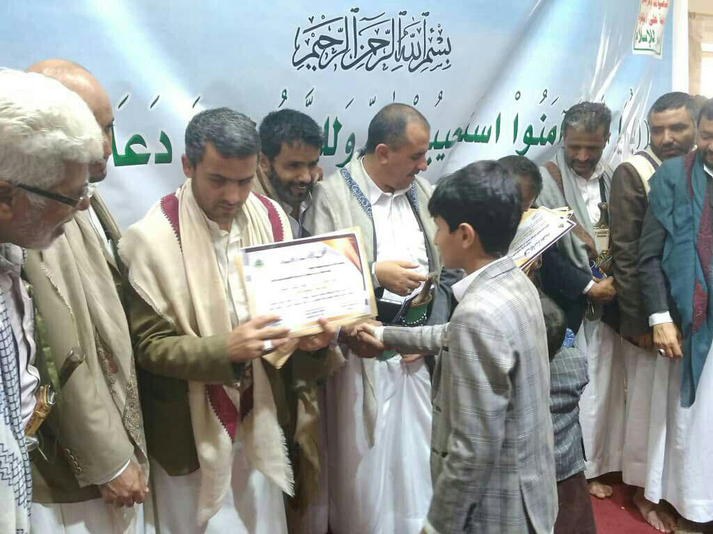 وفي الحفل الذي تخلله فقرات إنشادية وفنية وشعرية لطلاب المراكز الصيفية بالمديرية تم تسليم الشهادات والجوائز لأبناء الشهداء.