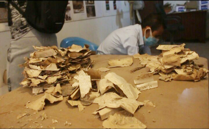 وأوضح عامر أنه تم تشكيل لجنة من عدة جهات ذات العلاقة ليتولى مندوبيها بجانب الاخصائيين بأعمال إخراج محتويات مبنى القبتين والتي هي عبارة عن كميات من القصاصات وبقايا مصاحف مخطوطة ومطبوعة كانت تملئ فراغ الحجرتين .. لافتاً إلى أن عمل اللجنة تم وفق أسس علمية متبعة حيث تم رفع المحتويات وتحريزها واستكمال أعمال التوثيق والتسجيل لها من خلال محاضر بشفافية مطلقة.