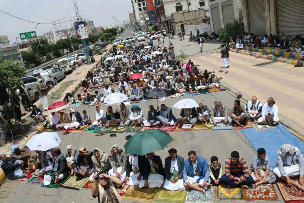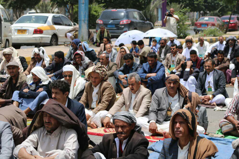 أدى موظفو شركة النفط اليمنية والنقابات و الهيئات التابعة لها صلاة الجمعة ال 16 امام مقر الأمم المتحدة في العاصمة صنعاء تحت عنوان (جمعة التخاذل الاممي تجاه معاناة الشعب اليمني).