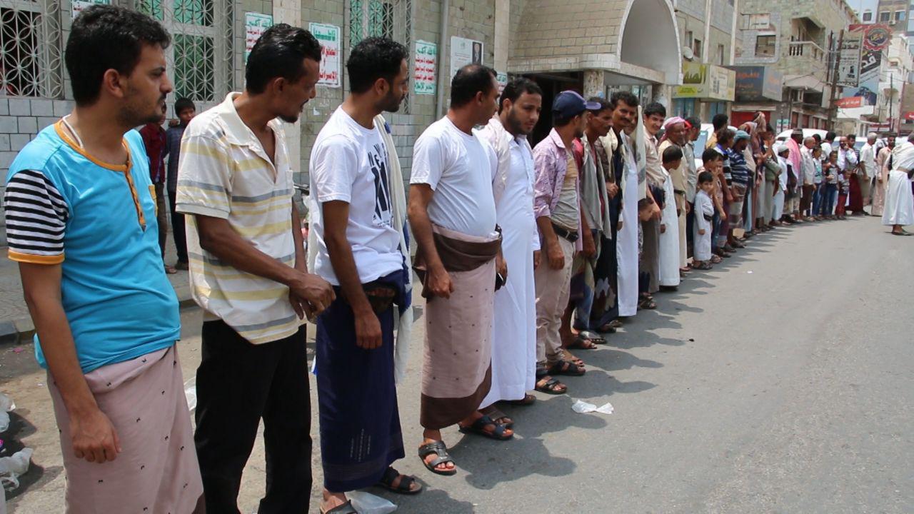 نفذ أبناء محافظة الحديدة عقب صلاة الجمعة وقفات احتجاجية نددت باستمرار مجازر العدوان ومرتزقته بحق الشعب اليمني وحصارهم الخانق من خلال إغلاق المنافذ البرية والبحرية والجوية واحتجاز السفن النفطية.