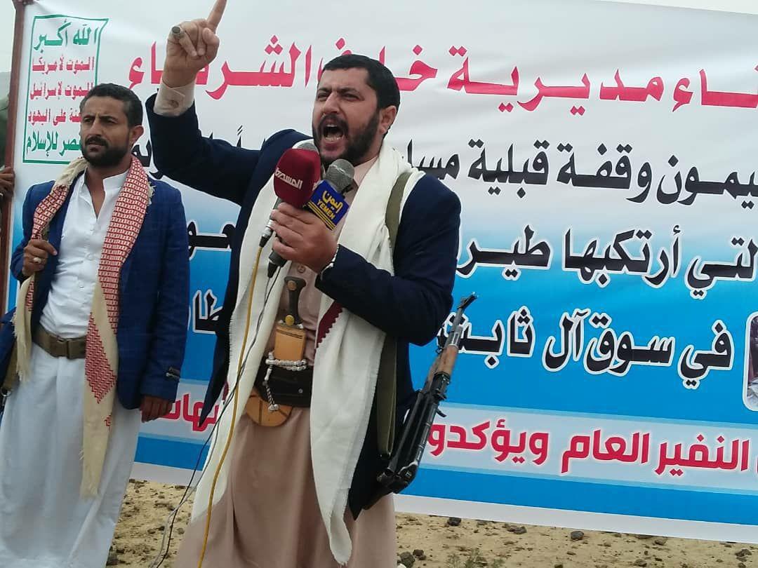 وخلال الوقفة التي حضرها الأمين العام لمحلي المحافظة الشيخ صالح المخلوس والمشرف الاجتماعي لأنصار الله الشيخ عبد العزيز خرفشة والشيخ نصر ابو شوارب ومدير عام المديرية الشيخ حسين الحمزي ومشائخ واعيان وقيادة المديرية.