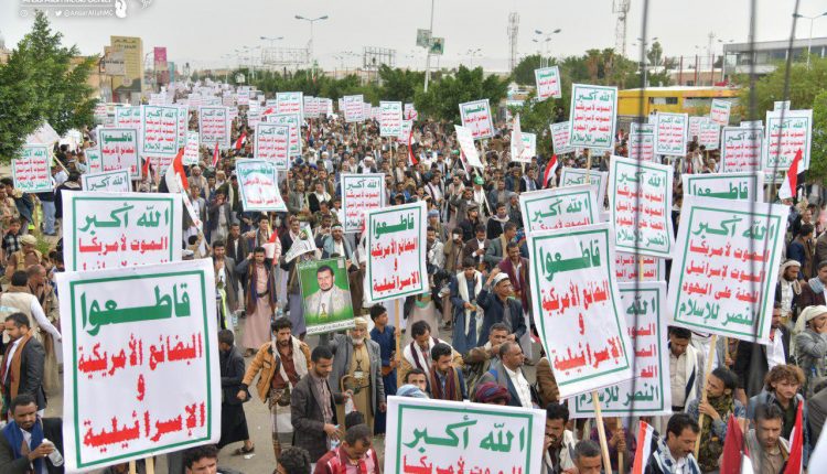 مسيرة حاشدة أمام مطار صنعاء للتنديد بإستمرار الحظر الجوي