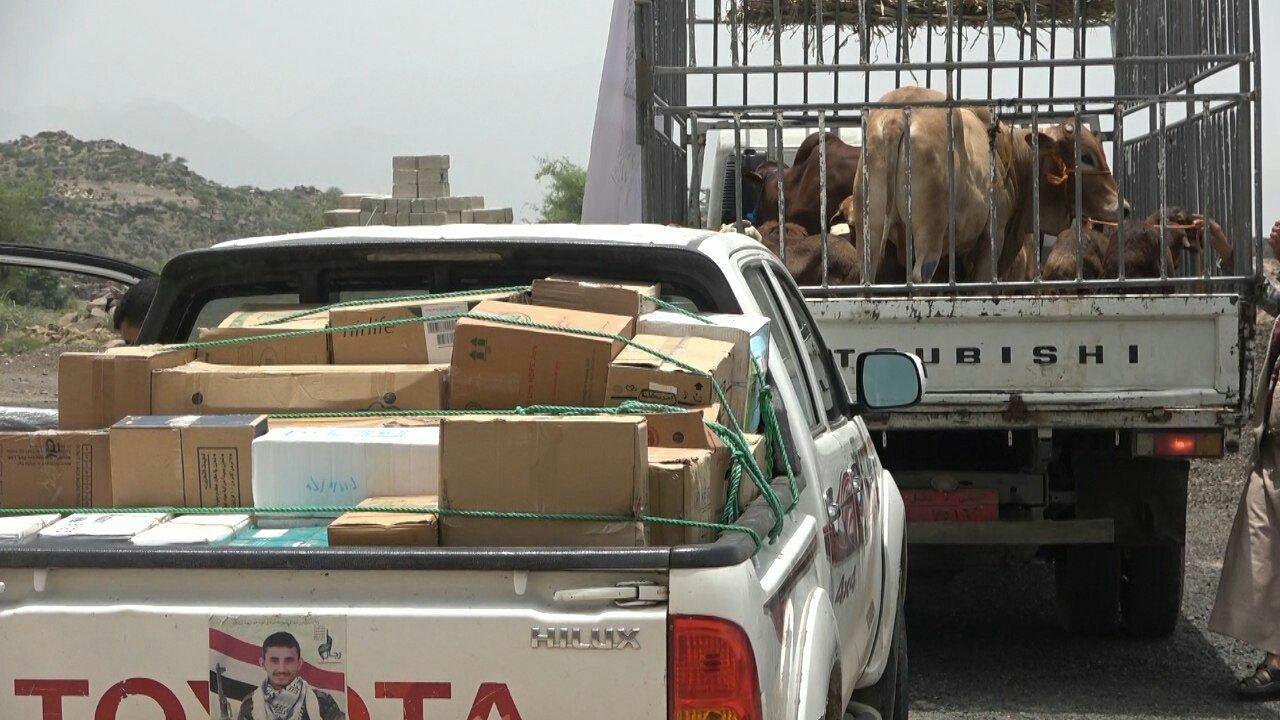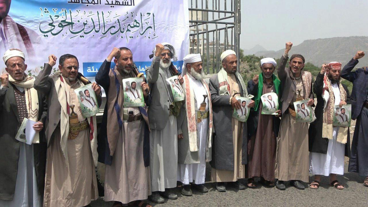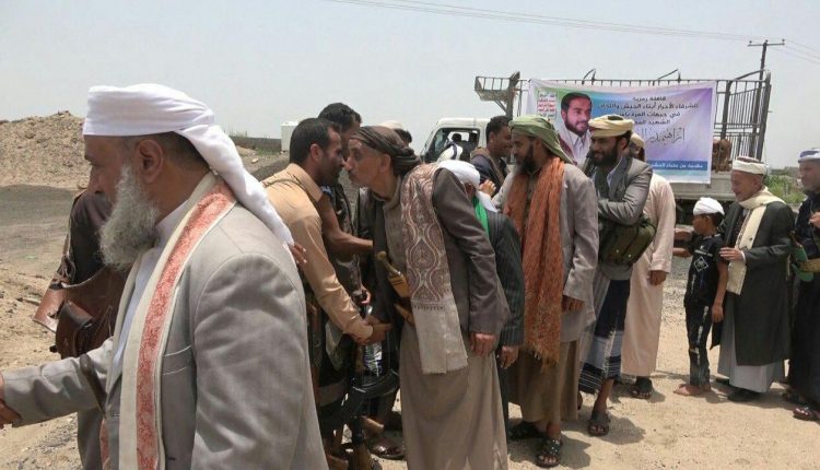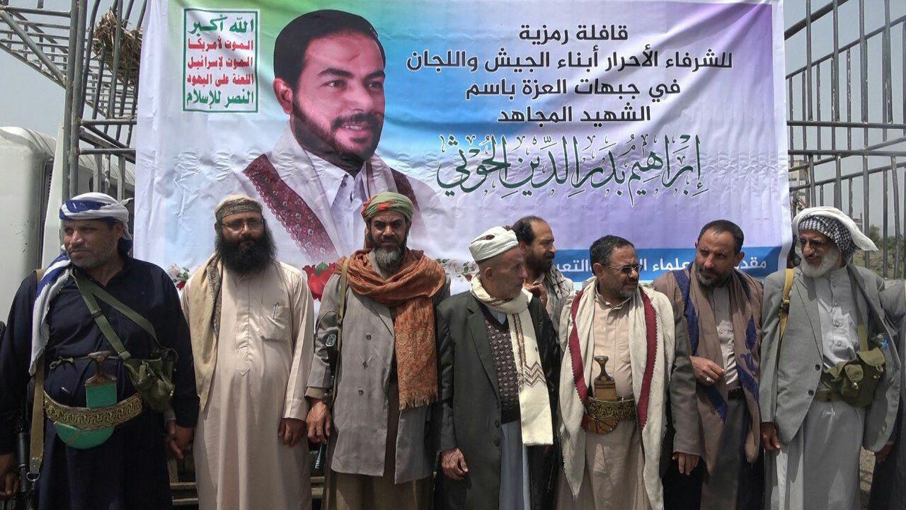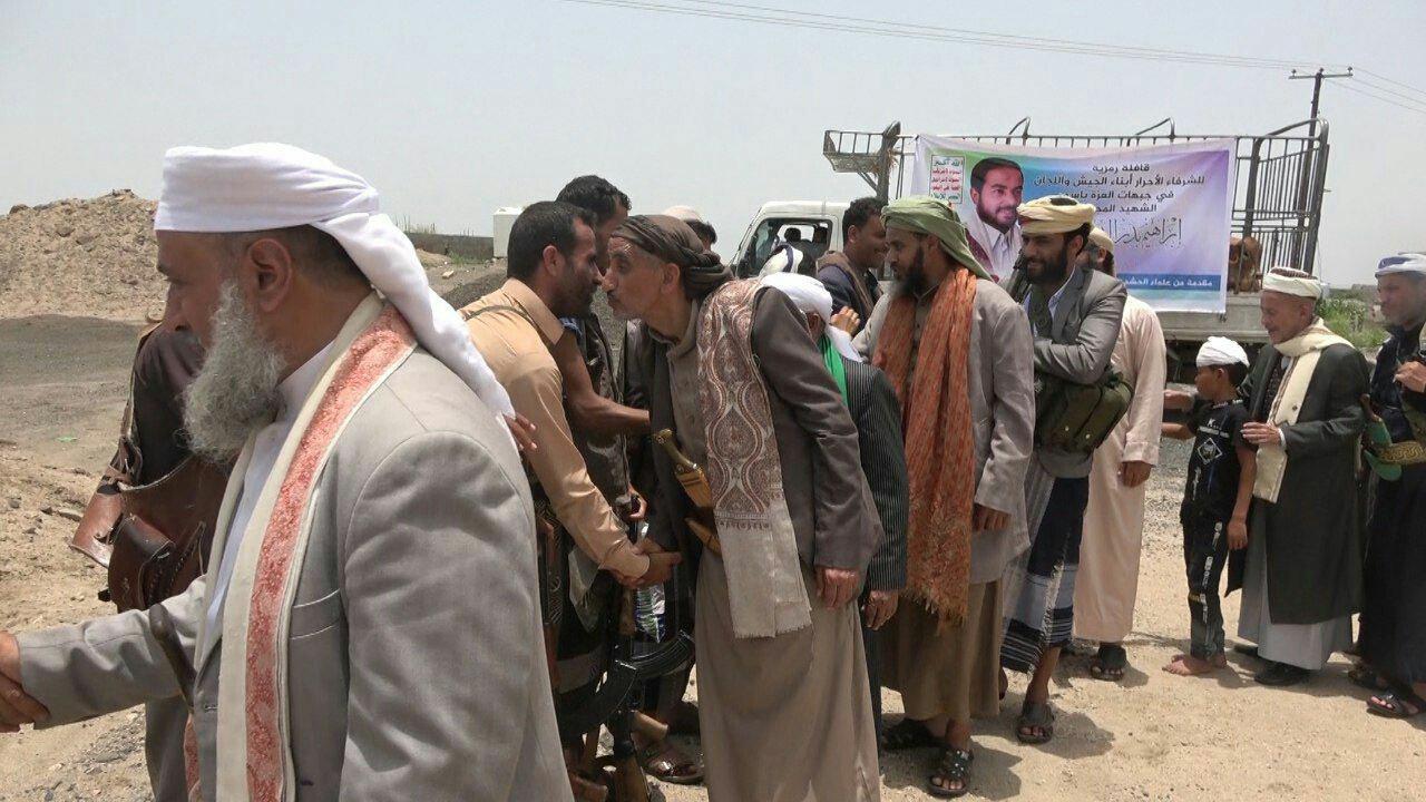 سير علماء الحشد والتعبئة العامة اليوم قافلة رمزية باسم الشهيد إبراهيم بدر الدين الحوثي للمرابطين في جبهة قعطبة بالضالع .