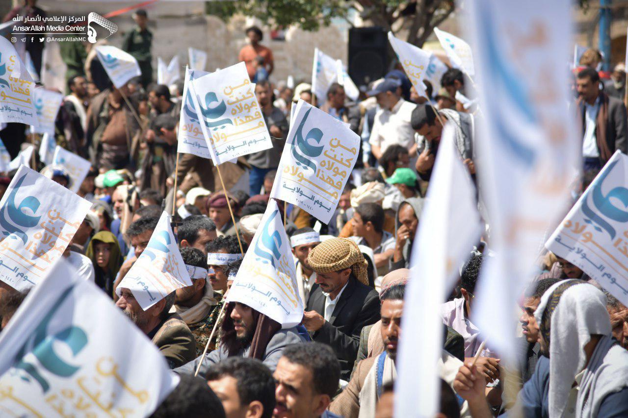 وكانت ثلاث مسيرات جماهيرية كبرى خرجت صباح اليوم الإثنين بالعاصمة صنعاء إحياء لذكرى يوم ولاية أمير المؤمنين عليّ عليه السلام.