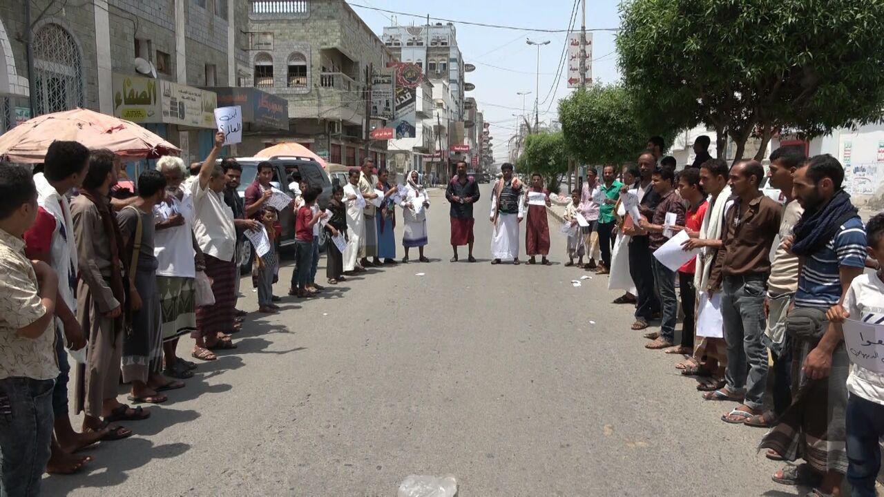 شاهد.. وقفات إحتجاجية في الحديدة تندد بإستمرار حصار العدوان لمدينة الدريهمي (صور)