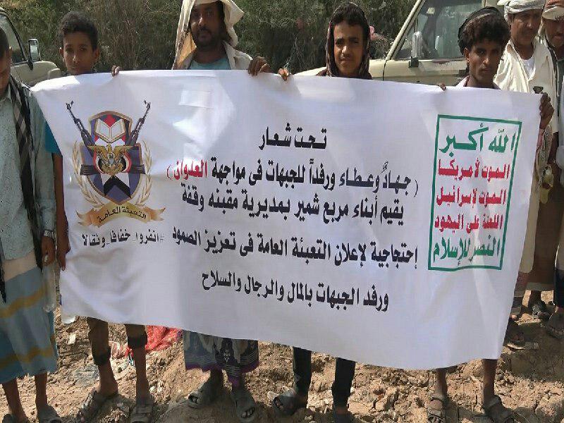 نظم أبناء مربع شمير بمديرية مقبنة بمحافظة تعز وقفة قبلية مسلحة ضمن سلسلة من الوقفات التي تشهدها محافظة تعز في إطار التعبئة العامة والحشد للجبهات.