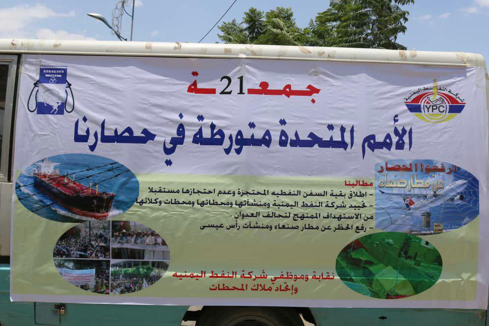 واصل موظفو شركة النفط اليمنية اليوم الجمعة، اعتصامهم المفتوح ونفذوا وقفة احتجاجية أمام مكتب الأمم المتحدة في العاصمة صنعاء تحت عنوان “الأمم المتحدة متورطة في حصارنا”.