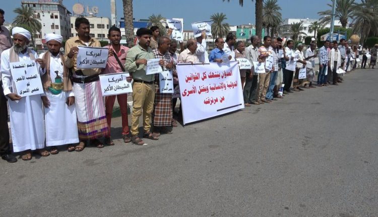 شاهد: أبناء الحديدة ينددون بجريمة سجن الأسرى في ذمار .. صور