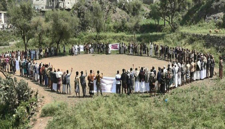 تعز | وقفة قبلية مسلحة لأبناء شرعب الرونة تنديدا بجرائم العدوان
