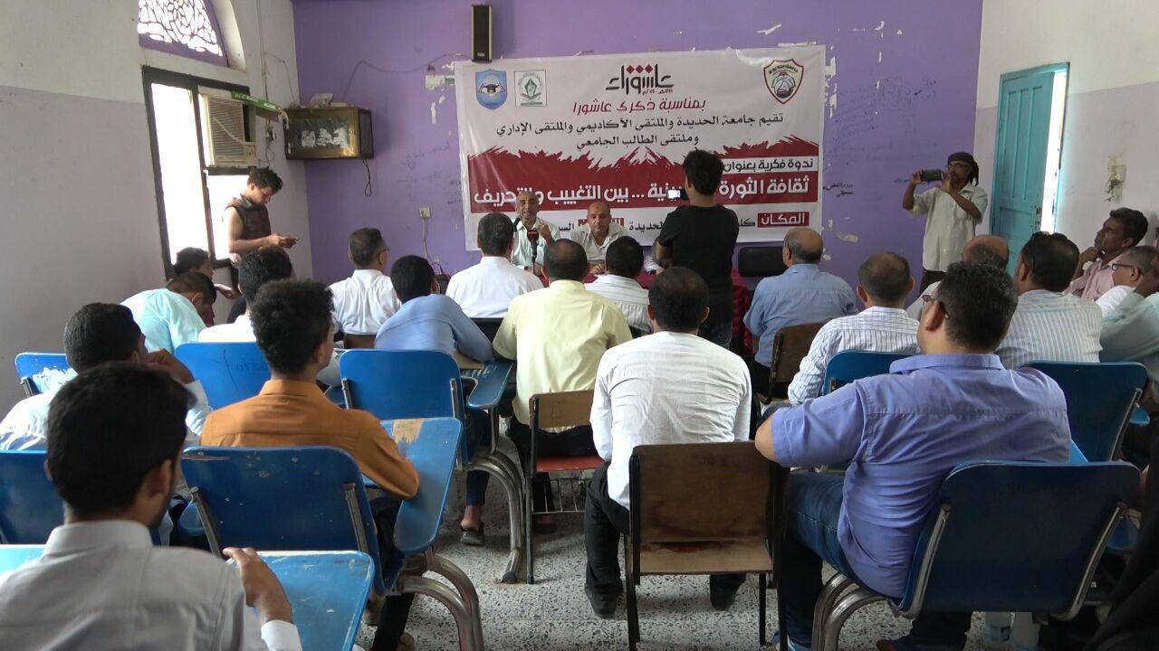 نظمت جامعة الحديدة والملتقى الأكاديمي والملتقى الإداري وملتقى الطالب الجامعي، ندوة فكرية بمناسبة ذكرى عاشوراء.