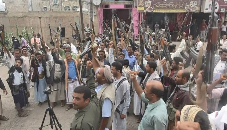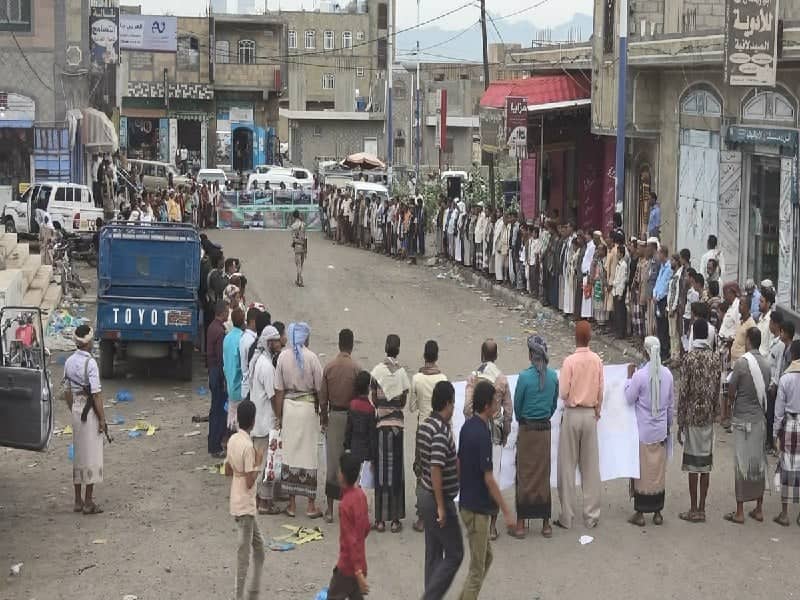 وقفة إحتجاجية مسلحة لأبناء دمنة خدير في تعز