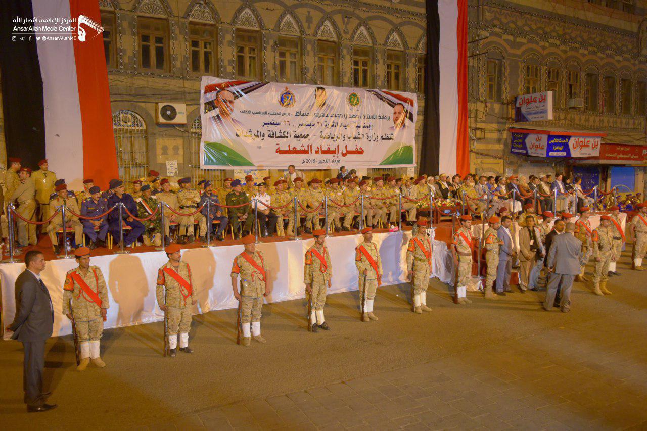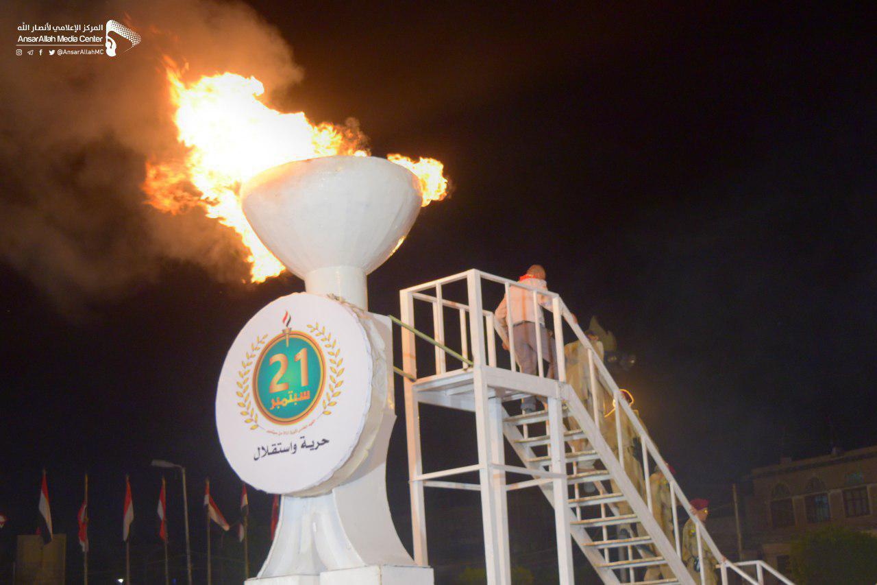 وقام وزير الشباب وأمين العاصمة والمفتش العام بوزارة الدفاع ومساعد وزير الدفاع ورئيس هيئة الاستخبارات العسكرية ومعهم رئيس لجنة مجسم الشعلة علي علي الجرموزي، بإيقاد شعلة الذكرى الخامسة لثورة 21 سبتمبر.