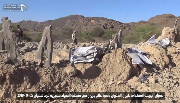 يأتي هذا في حين استهدف طيران العدوان منزل المواطن عبده أحمد يحيى جماعي في منطقة الشعاب بمديرية حرض ما أدى إلى استشهاد مواطن وإصابة آخر ونفوق عدد كبير من المواشي.