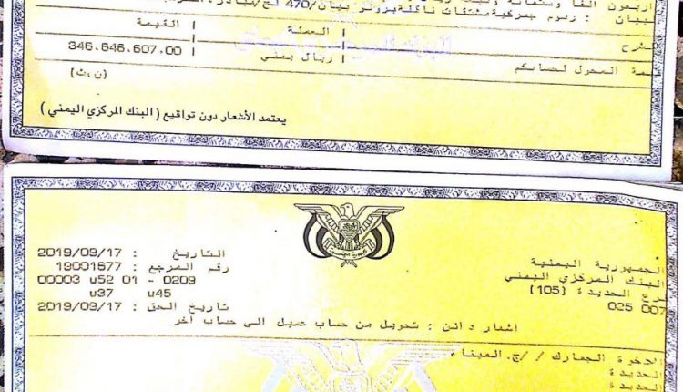 كما اكدت الاشعارات البنكية قيام البنك المركزي اليمني في الحديدة بإيداع إيرادات الموانئ من رسوم وجمارك وغيرها إلى حساب المرتبات وفق مبادة المجلس السياسي الأعلى في يوليو-2019م وذلك ذمن تفاهمات ستوكهولم.