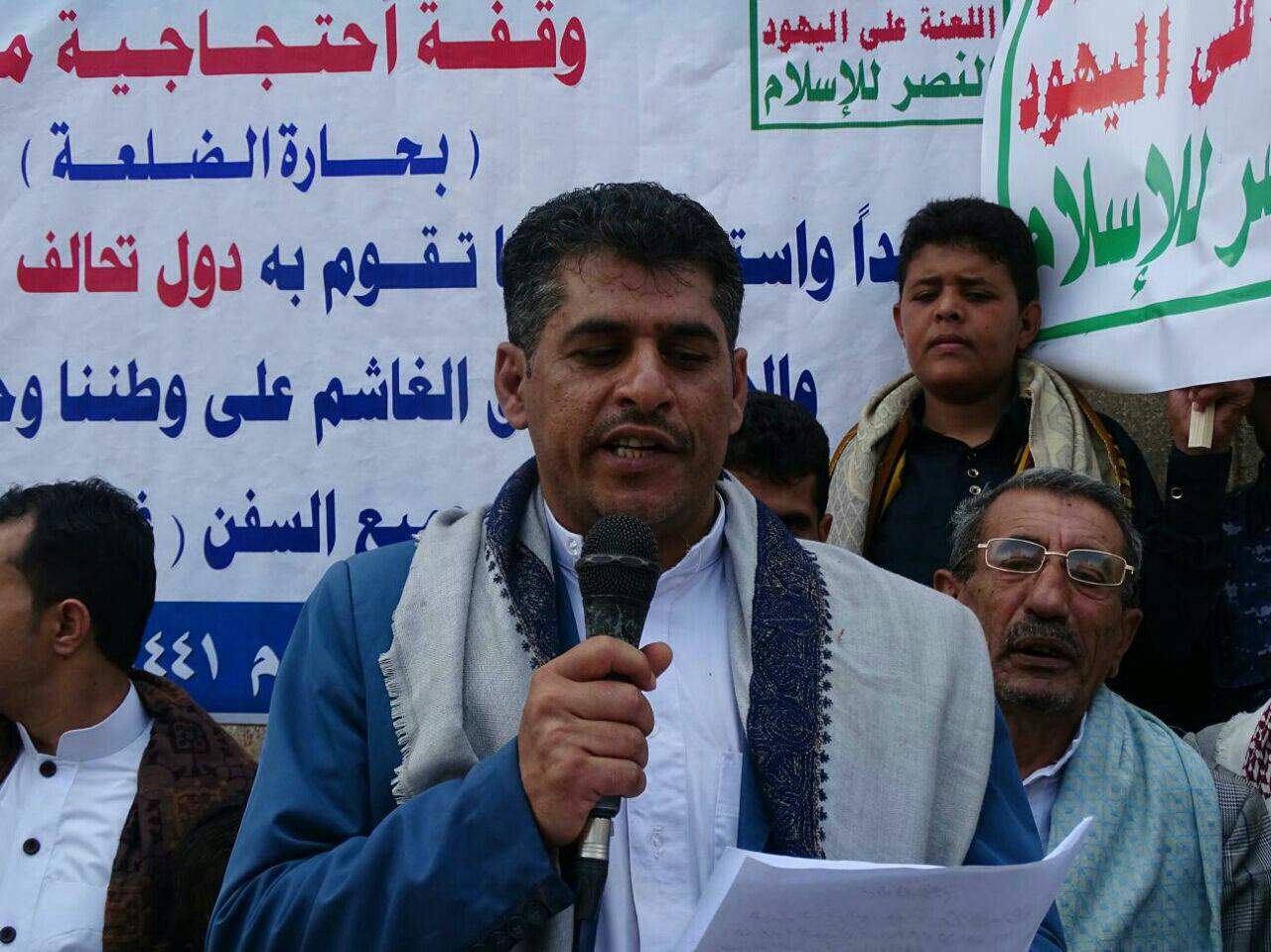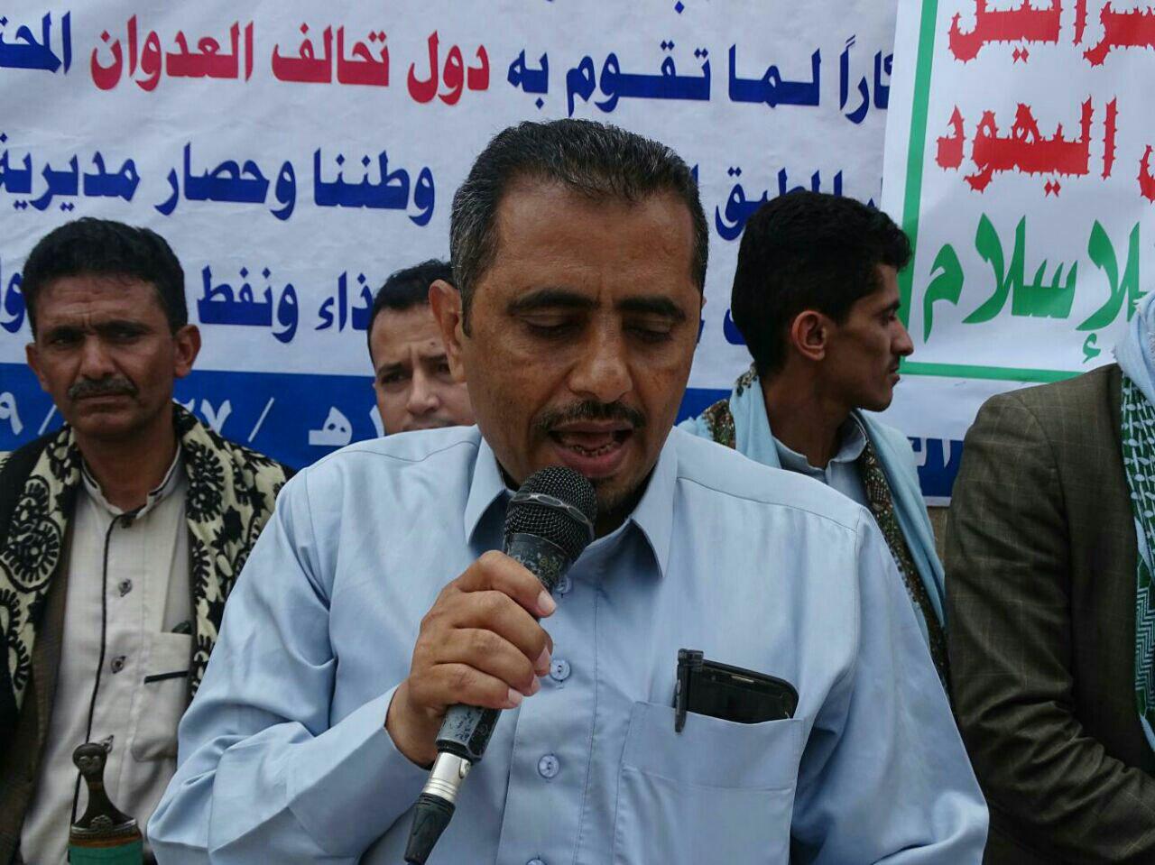 وطالب المشاركون بفك الحصار الجائر المفروض على البلد منذ خمسة أعوام وفك الحصار على مديرية الدريهمي بمحافظة الحديدة والذي لها أكثر من عام ما جعل ابناها يأكلون من أوراق الأشجار. . مناشدين الأمم المتحدة ومجلس الأمن سرعة إطلاق سفن الغذاء والدواء والوقود وعدم الانحياز الواضح للتحالف العدوان السعودي الإماراتي الأمريكي.