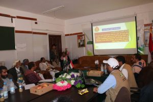و أشارا إلى اهمية اللقاء الذي يهدف إلى الحد من انتشار مرض ذبول الرمان و دراسة المسبب المرضي و اختيار الطرق المناسبة لمعالجته و مكافحته و كذا عمل دراسة لسلسلة القيمة لمحصول الرمان تتابع جميع العمليات التي يتم بها زراعة المحصول ابتداءا من استيراد المدخلات الزراعية و انتهاءً بايصال المنتج للمستهلك .