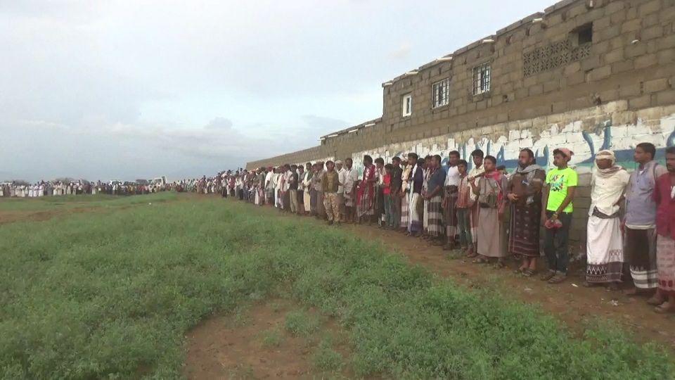 ودعا المشاركون في الوقفة إلى الاستمرار في رفد المرابطين في الجبهات للرد على جرائم العدوان ومرتزقته.