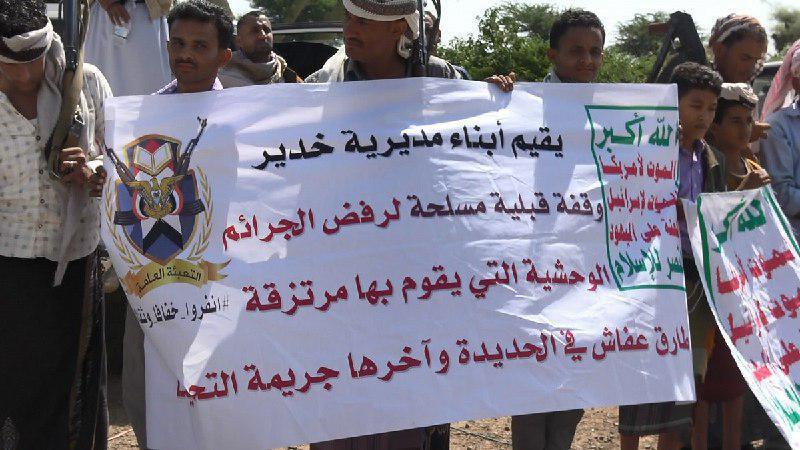نظم أبناء المربع الشمالي لمديرية التعزية وأبناء مديرية خدير بمحافظة تعز وبمشاركة واسعة من أبناء مديرية القبيطة بمحافظة لحج وقفتان قبليتان مسلحتان صباح اليوم الثلاثاء، استجابة لنداء النكف القبلي الذي أطلقه أبناء تهامة وتنديدا بالجرائم التي يرتكبها مرتزقة العدوان بحق اليمنيين وجرائم هتك الأعرض والتي كان من آخرها تعدي مرتزقة طارق عفاش على الاعراض في مديرية التحيتا بالحديدة.