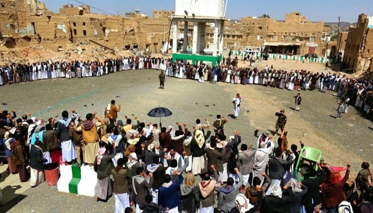 وقفة قبلية في محافظة صعدة تنديداً بجريمة مرتزقة العدوان في التحيتا